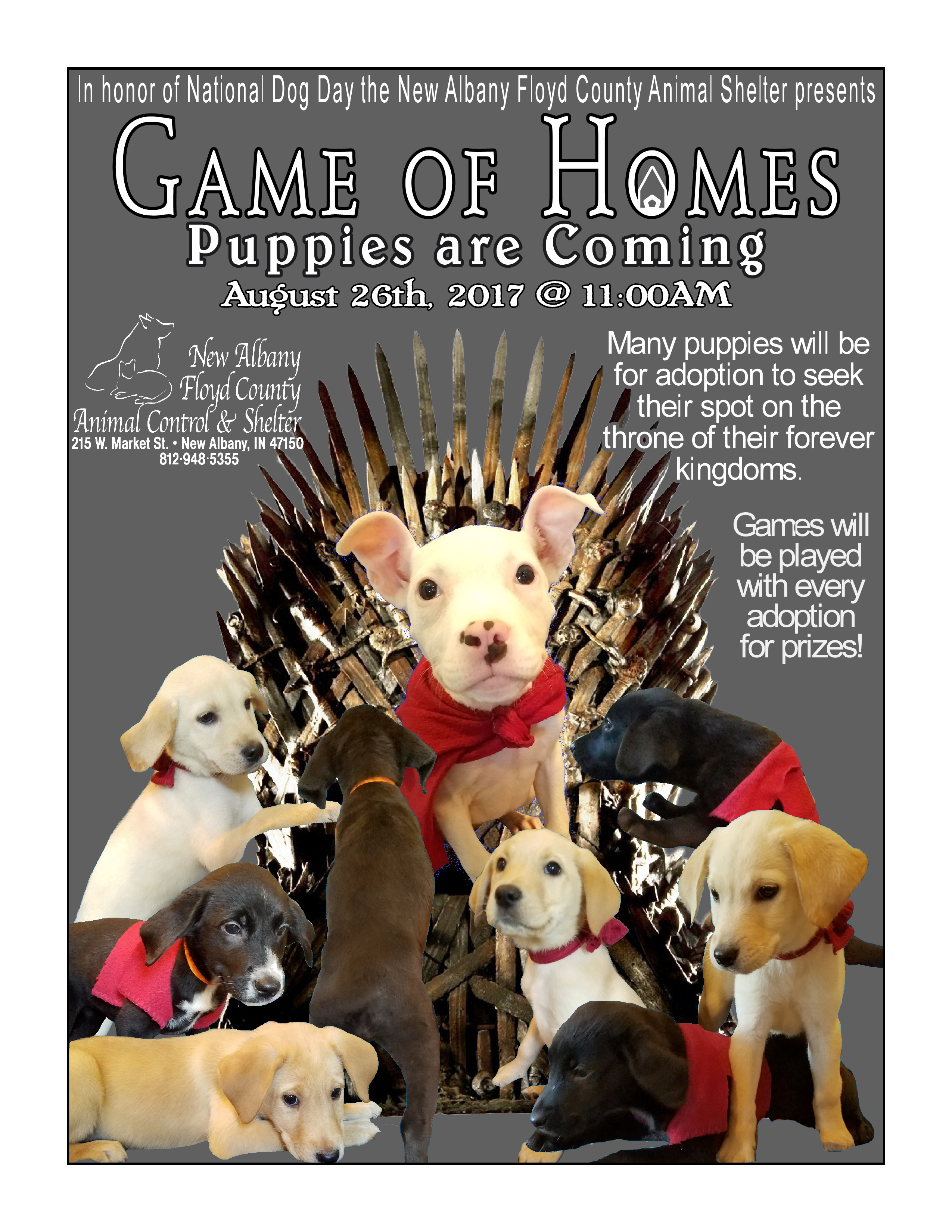 In honor of National Dog Day, the New Albany Floyd County Animal Shelter will be hosting The Game of Homes!