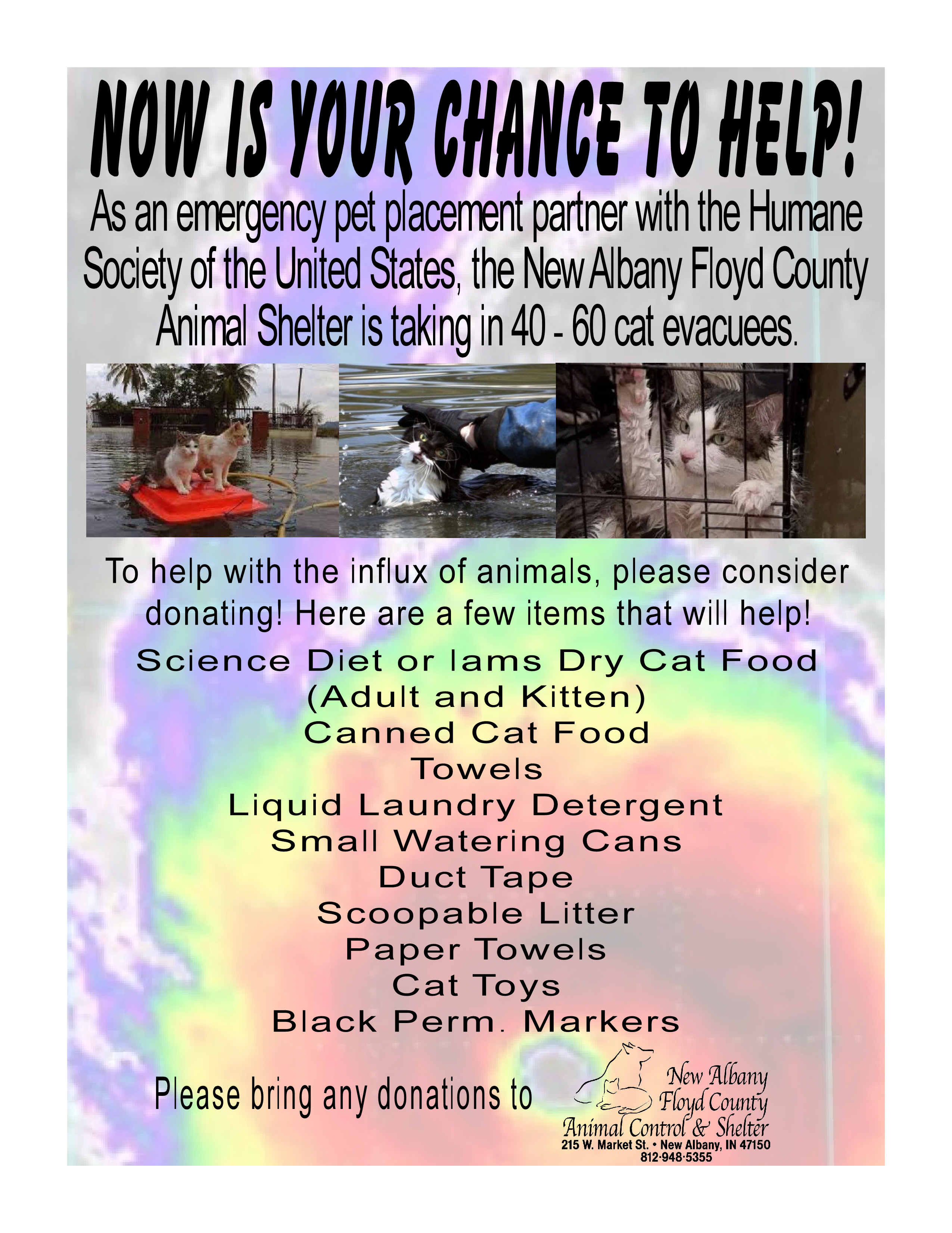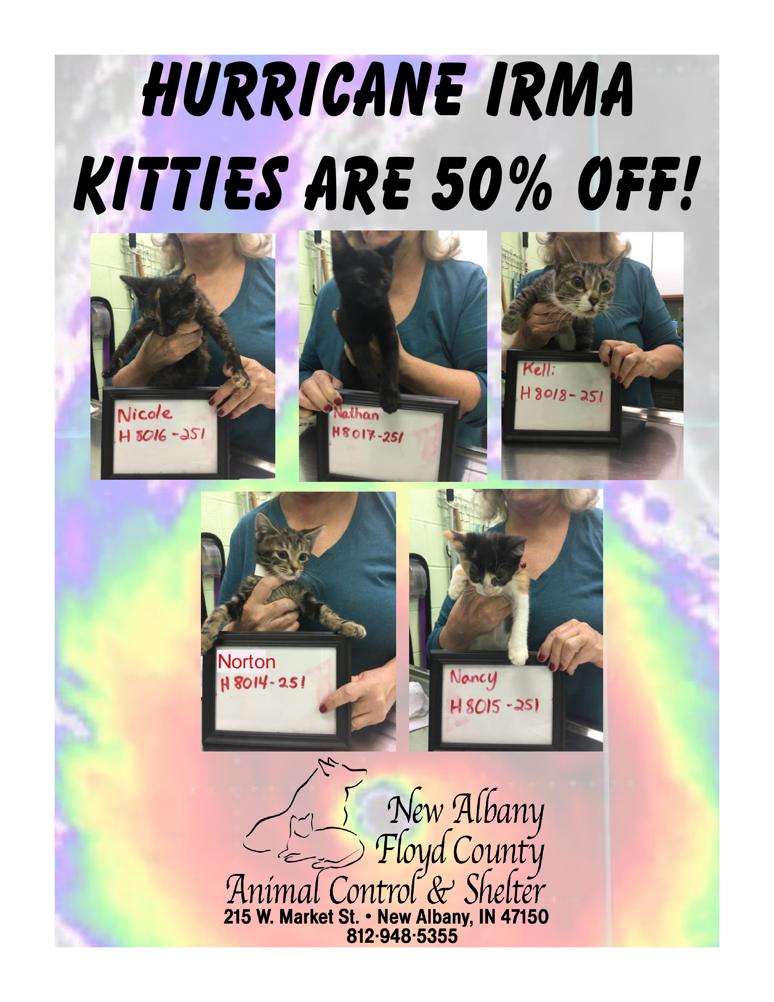 All dogs adopted from the New Albany Animal Shelter are spayed or neutered, microchipped, current on vaccinations at the time of adoption, and heartworm tested negative if old enough. Our $80 adoption fee provides a great value, plus on Saturday all dog adopters will draw for a surprise gift!