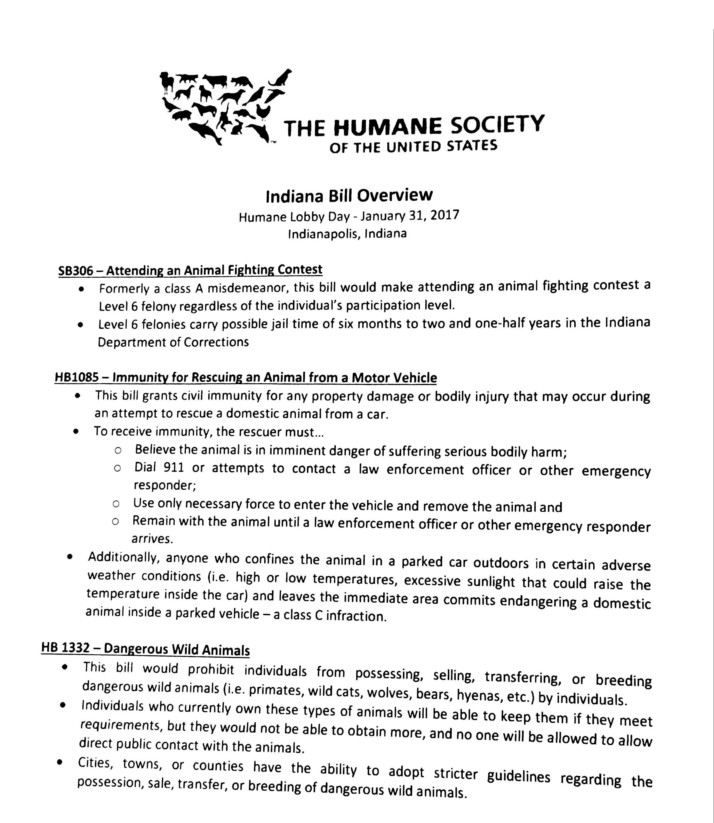 Yesterday, two staff members went to the Indianapolis State House to personally talk with our Senators and Representatives about a few bills that are going through the process of (hopefully) becoming law that will help protect the animals in our community. It is VERY important for our legislators to hear from their constituents about what they feel is important and their thoughts on the different bills. We encourage everyone to contact your state legislators and politely and respectfully urge them to support these three bills- SB306, HB1085, and HB1332. Below is a description of these three bills.