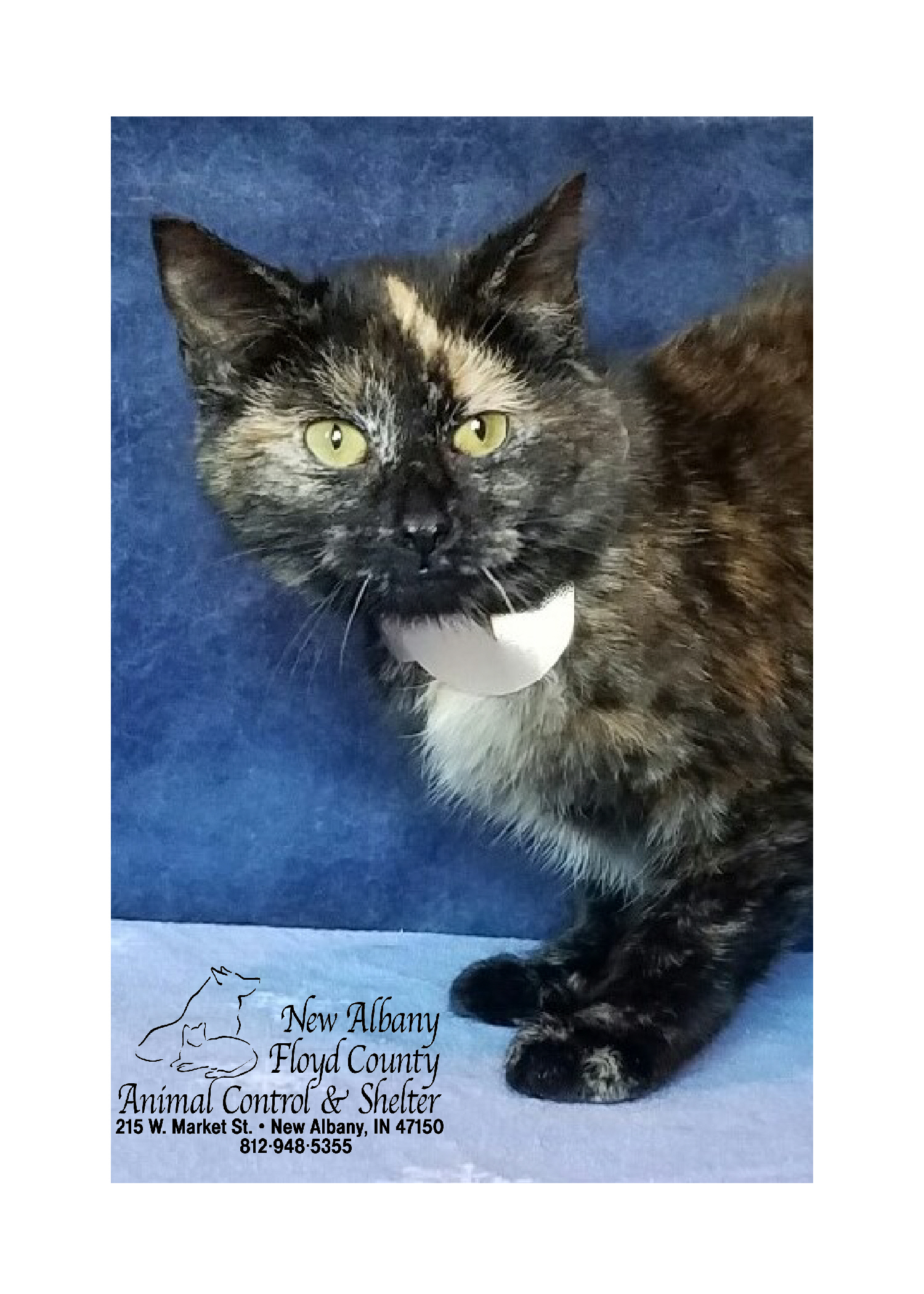 Cayanne is just the right amount of sweet and spicy in a furbaby! She is a stunning young tortoiseshell that is about 7 months old. She loves to chase toys around the room for hours of entertainment. When that is done, she is ready to snuggle in closely and relax. She does well with other animals once she gets used to them being around and knows she is safe.  She is already spayed, microchipped, Felv/FIV tested negative, and current on vaccinations. Her adoption fee is only $20. Visit her at the New Albany Floyd County Animal Shelter today and let her be your Valentine! More adoptable animals by clicking the “Adoptable Animals” tab above.