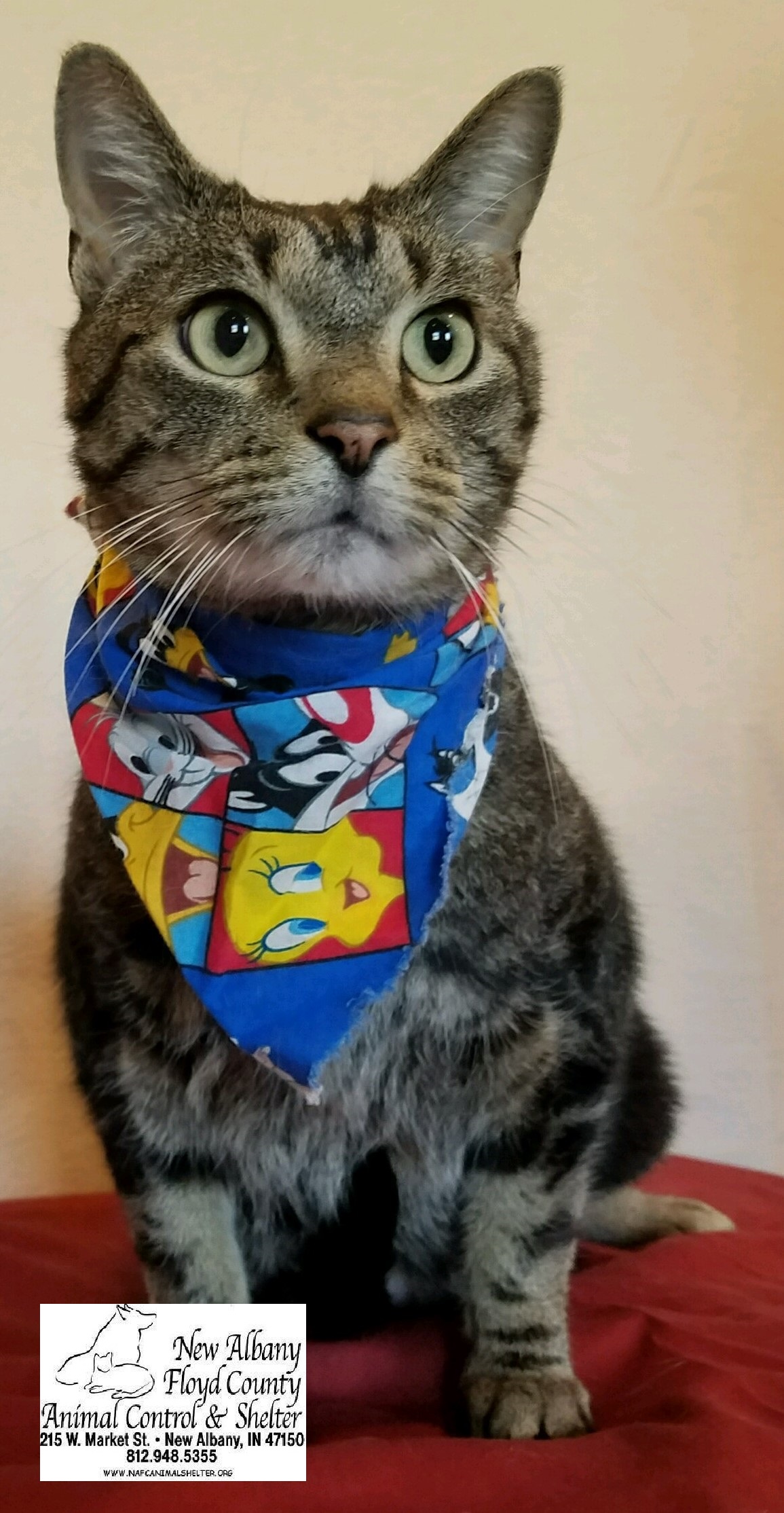 Look at this striking guy! This is Leslie! He was surrendered as stray that had been hanging around the neighborhood. Now, he wants nothing more then to cuddle in your lap! He is already neutered, microchipped, Felv/FIV tested negative and current on vaccinations. His adoption fee is only $20! Visit him at the New Albany Floyd County Animal Shelter today to fall in love. More adoptable animals can be seen by clicking the “Adoptable Animals” tab above!
